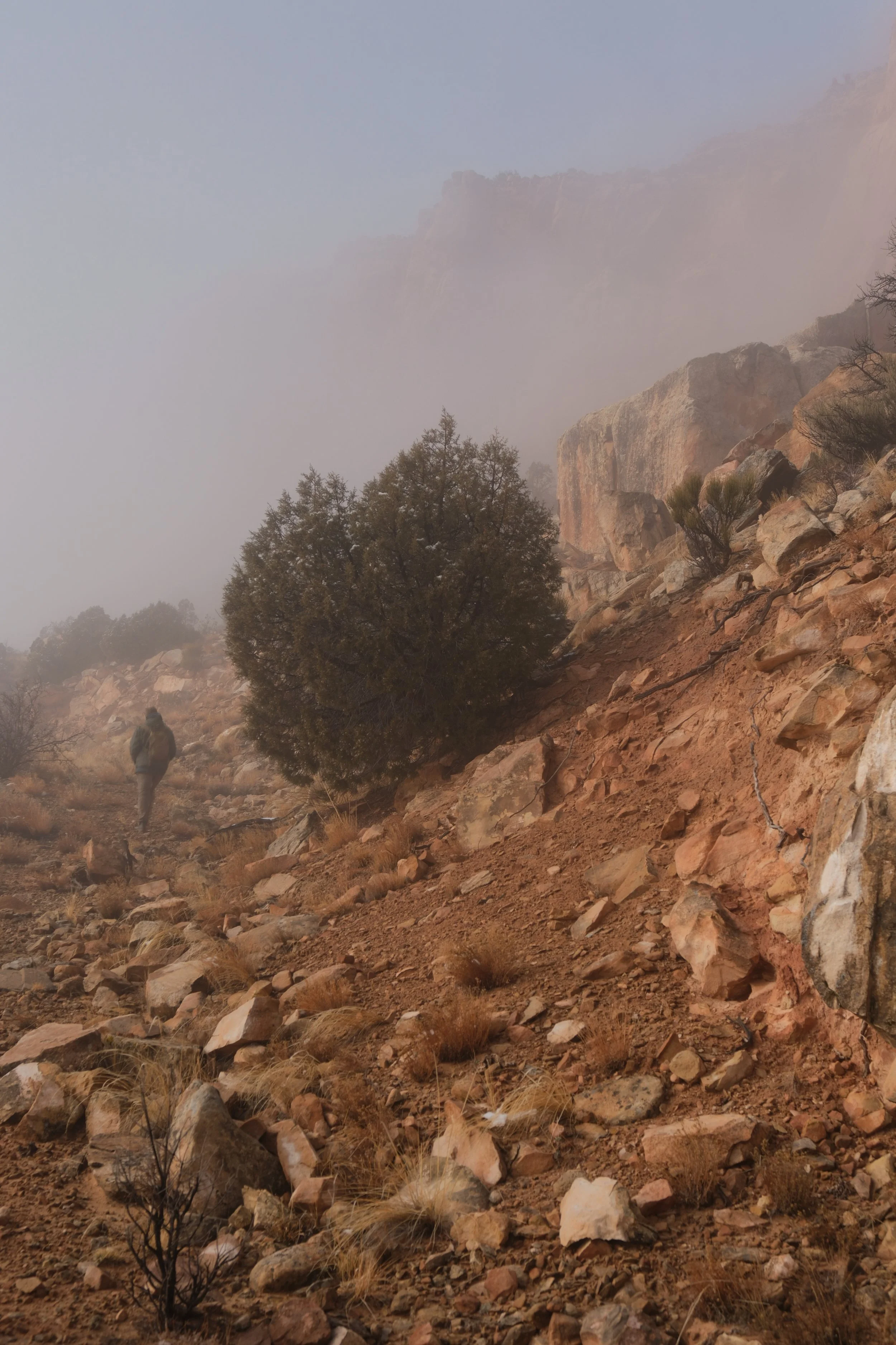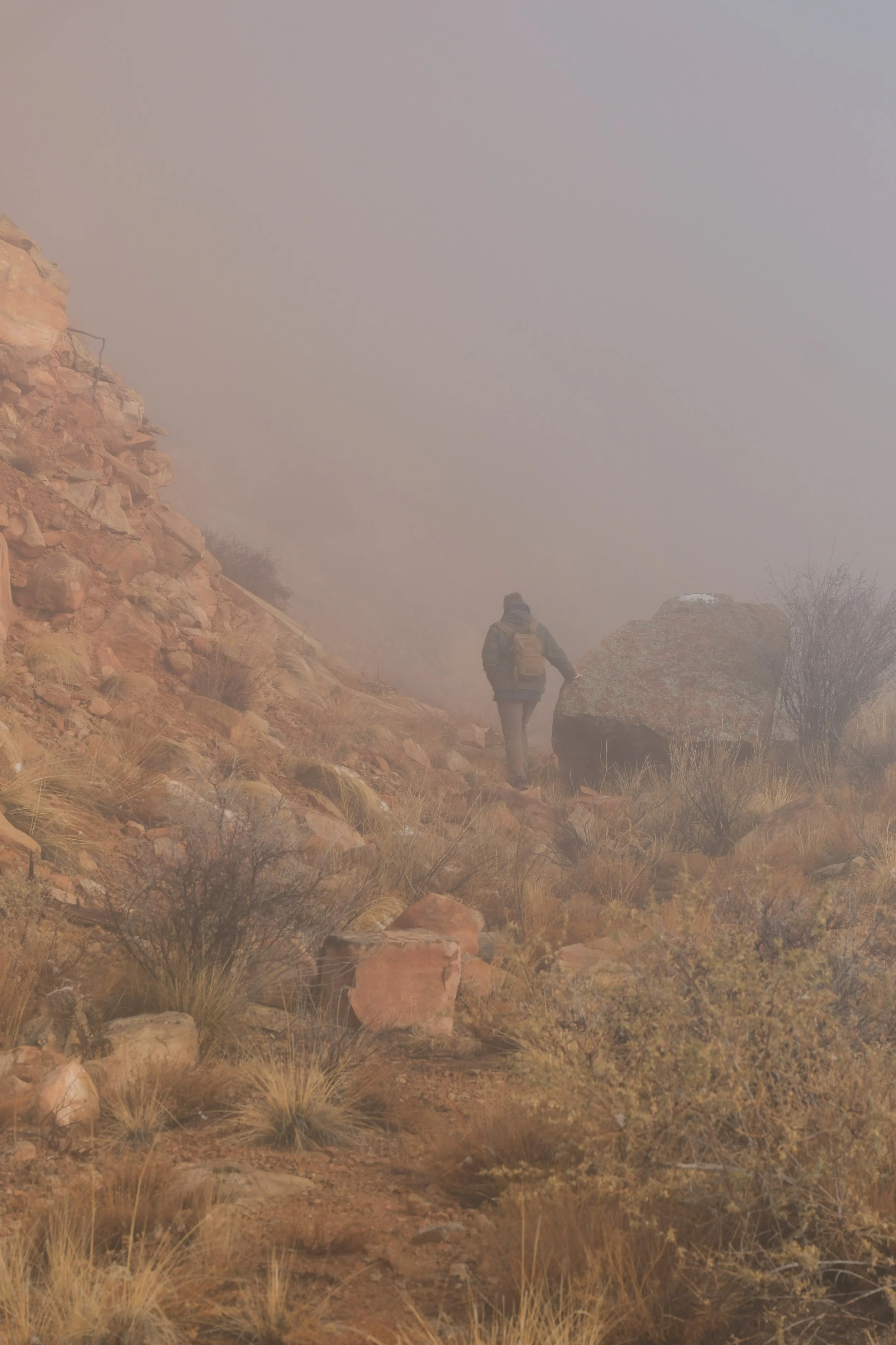 Walking up to the malachite mine to collect the vibrant green stones.